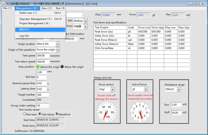 我司儀器設(shè)備成功出口多國,軟件系統(tǒng)升級中英文一鍵切換
